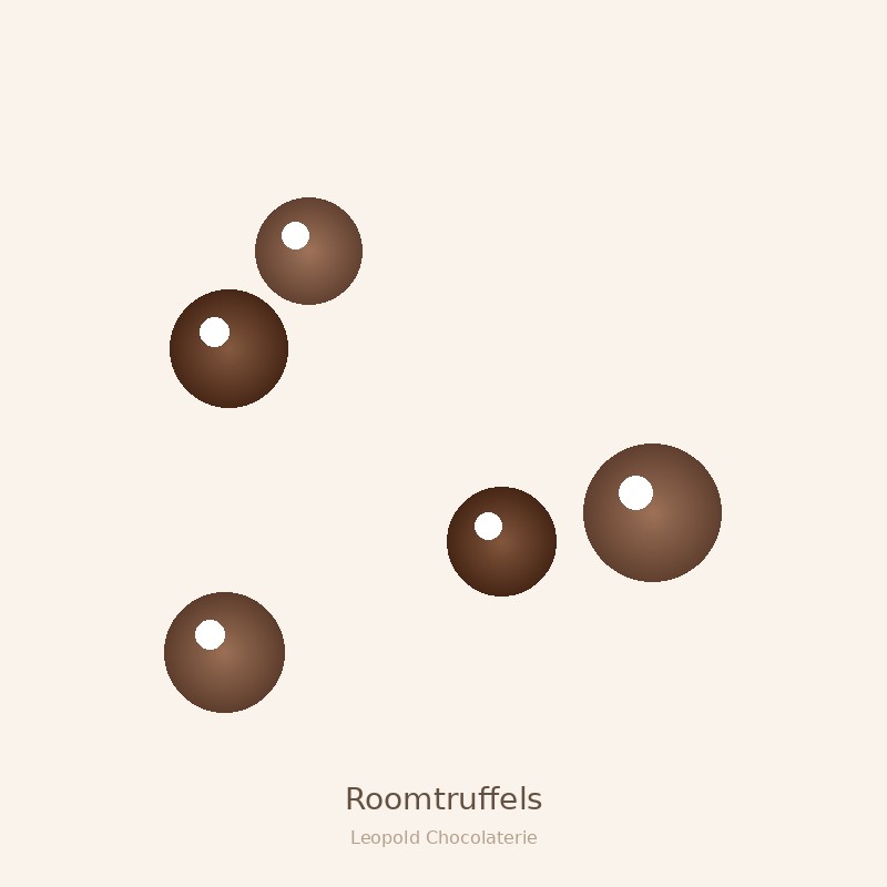 Onze roomtruffels zijn heerlijk zachte chocoladebolletjes met een intense cacaosmaak. De buitenkant is bestrooid met fijne belgische cacaopoeder, binnenin zit een romige ganache van pure Callebaut chocolade en verse room.